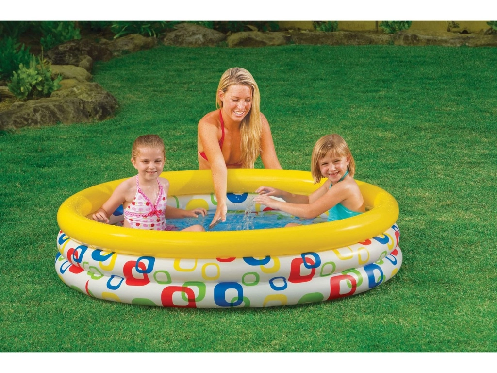 Profitez des joies de l’été avec la piscine gonflable INTEX à pois colorés. Trois anneaux stables, une capacité jusqu’à 330 l remplie à 23 cm, un matériau résistant et une graphique colorée attrayante garantissent des jeux d’eau sûrs et amusants pour les enfants au jardin.