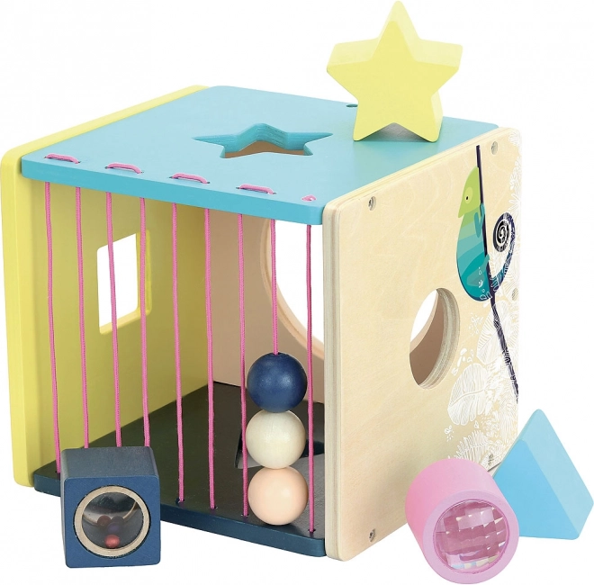 Les enfants peuvent insérer différentes formes dans les ouvertures correspondantes, ce qui développe leur motricité fine et leur perception spatiale.