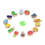 - 14 perles en bois sur le thème de la ferme (légumes, fruits, animaux, bottes, etc.)