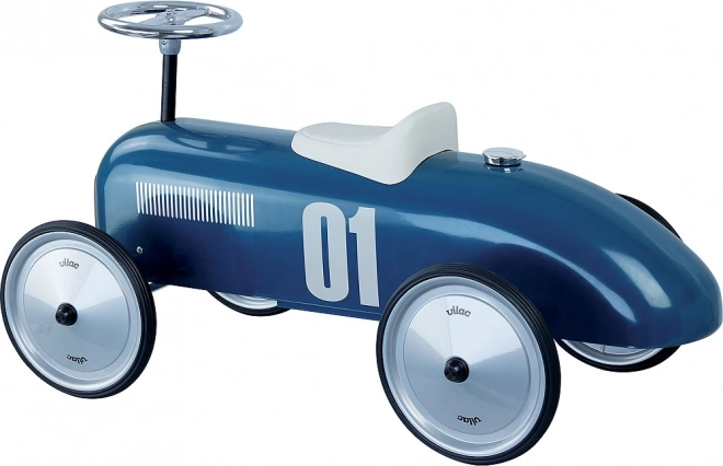 Draisienne vintage élégante qui associe une structure métallique à une couleur bleue attrayante, idéale pour les plus petits passionnés d’automobiles.