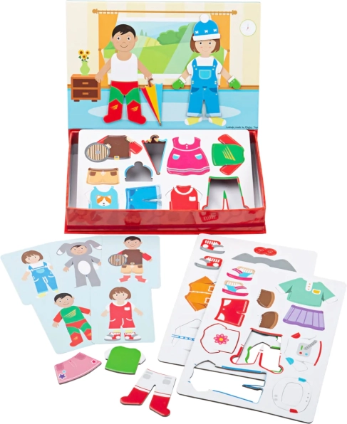 Stimulez la créativité des enfants avec le nouveau puzzle d’habillage magnétique Robes de Bigjigs Toys. Les enfants peuvent habiller une paire de personnages à l’aide de pièces illustrées magnétiques, permettant un jeu créatif illimité et la création d’histoires.