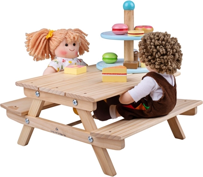 Le banc de pique-nique en bois de Bigjigs Toys est l'endroit idéal pour un goûter d'après-midi avec des poupées ou des peluches. Ce banc robuste est fabriqué en bois de haute qualité, assurant sa longévité et apportant une belle apparence naturelle à chaque chambre d'enfant.