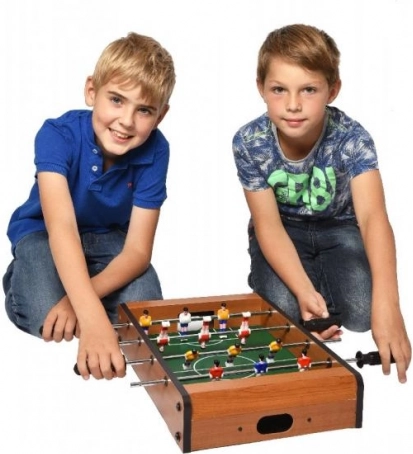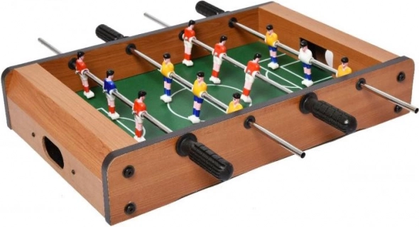 Ce baby-foot compact est le choix idéal pour tous les amateurs de football qui souhaitent s'amuser à la maison. Construit en bois coloré et laqué, il assure une longue durée de vie. Chaque équipe a 6 joueurs placés sur deux barres, permettant un contrôle facile et une simulation de match de football réelle.