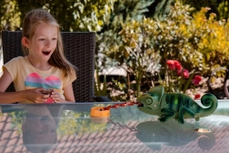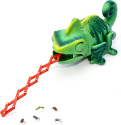 Le jouet permet de contrôler les mouvements vers l'avant, vers l'arrière, à gauche et à droite. Le dos du caméléon peut briller en cinq couleurs, et ses yeux, sa queue mobiles et sa langue extensible permettent une interaction de jeu – par exemple, attraper des insectes à partir des disques en plastique fournis. Ce jouet est un excellent choix pour les enfants fascinés par les technologies avec des éléments naturels.