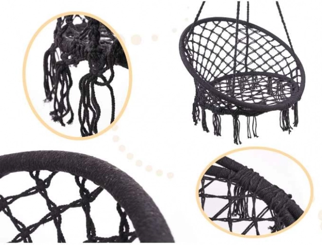 Fauteuil suspendu nid de cigogne avec dossier + coussins – Noir