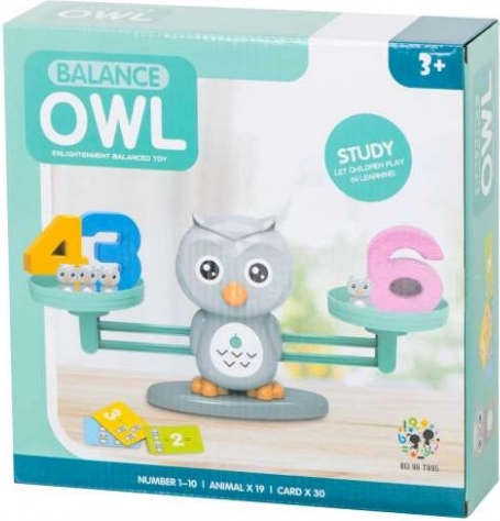 Le coffret contient la balance avec la chouette, 19 petites chouettes, 10 chiffres en plastique et 30 cartes d’exercices. La diversité des modes de jeu maintient l’attention des enfants et encourage la créativité et la découverte autonome.