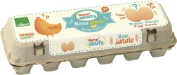 Les œufs en bois memory sonore dans un emballage carton classique sont idéals pour développer les capacités sensorielles chez les enfants. Le jouet stimule la mémoire en amenant les enfants à rechercher des paires d'œufs avec le même son.