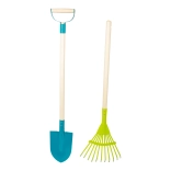Ce set coloré contient tout ce dont les enfants ont besoin pour leurs premières expériences de jardinage – une pelle à la forme sûre avec une poignée en D facile à saisir et un râteau léger pour ramasser les feuilles ou la terre. Grâce à la combinaison de qualité du bois et du métal, les outils sont résistants tout en restant agréablement légers pour les mains des enfants.
