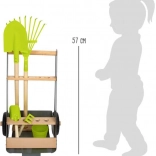 Ce chariot de jardin permet aux jeunes jardiniers de travailler sur leur parterre de rêve. Le chariot stable en hêtre et en métal peut être facilement poussé ou tiré dans le jardin grâce à ses roues solides. Il contient 5 outils pour un jardinage sûr et amusant.