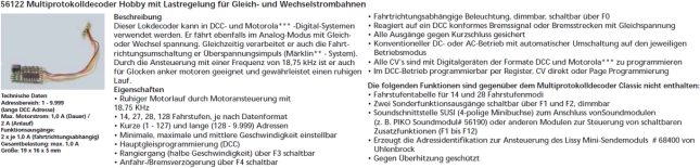 Le décodeur multiprotocole performant Piko Loco est idéal pour les modèles ferroviaires, garantissant une exploitation sans problème grâce à sa compatibilité avec les systèmes DCC et Motorola. Ce décodeur peut également fonctionner en mode analogique en courant continu et prend en charge l’inversion du sens de marche via les impulsions de surtension du système Märklin.