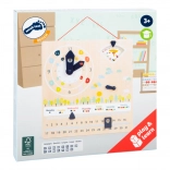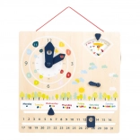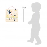 Le calendrier didactique en bois SMALL FOOT aide les enfants à apprendre de façon ludique l’heure au format 12/24 h, la date, les jours et les mois ainsi que la météo et les saisons. Il est fabriqué en bois 100 % FSC, se suspend facilement et comprend des autocollants en 15 langues. La manipulation des éléments développe la motricité fine et la concentration.