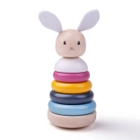 Cette tour à empiler en bois de qualité, aux couleurs pastel, est un premier jouet éducatif idéal. Les enfants empilent les anneaux du plus grand au plus petit, renforcent la coordination œil-main et apprennent à distinguer les couleurs et les formes. Les oreilles et la queue en tissu du petit lapin ajoutent une dimension tactile au jeu.