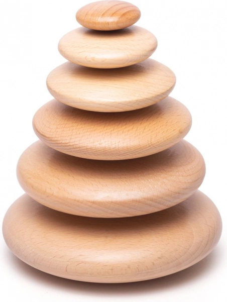 Ce jeu d’équilibre ouvert, sans consignes, invite les enfants à laisser libre cours à leur imagination : construire des tours, créer des motifs, trier par taille ou transformer les galets en une décoration élégante pour la chambre. L’aspect naturel et la surface lisse du bois offrent une expérience tactile agréable et un jeu calme et concentré.