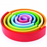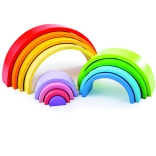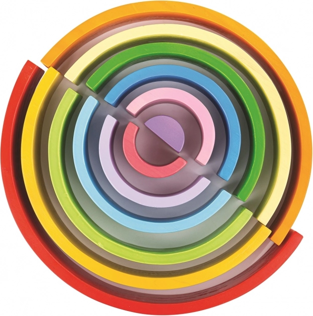 L’arc-en-ciel est fabriqué à partir de bois de qualité, issu de sources responsables, et peint avec des peintures sûres et non toxiques. Il respecte les normes européennes de sécurité actuelles, vous garantissant une utilisation sûre et durable. Une fois le jeu terminé, la palette d’arcs colorés devient un bel élément décoratif dans la chambre d’enfant ou en crèche.