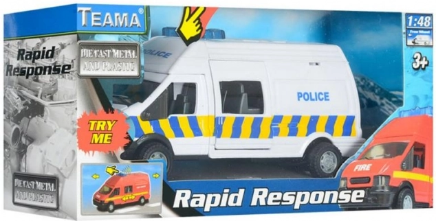 La voiture métallique Rapid avec son est le jouet idéal pour tous les petits amateurs de voitures. À l'échelle 1:48, elle apporte authenticité et amusement, que les enfants adorent.