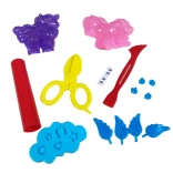 Différents moules et outils, dont des ciseaux et un moule de décoration, permettent de créer des détails et des ornements. Les enfants s’amusent à chaque séance de création.