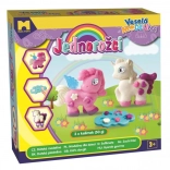 Un coffret créatif coloré avec pâte à modeler et moules transforme les idées des enfants en adorables licornes et autres formes. Idéal pour développer l’imagination et la motricité fine.