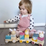 Le train divertit les enfants comme jouet à tirer, jeu d’encastrement et puzzle. Les différentes combinaisons de blocs stimulent l’imagination, la patience et la coordination.