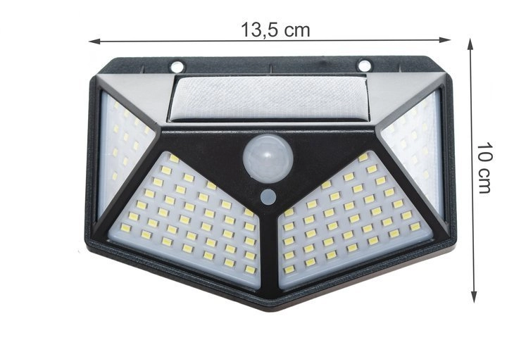 Grâce aux 100 LED placées au centre et sur les côtés de l’appareil, la lumière est très brillante et puissante, offrant une excellente visibilité. L’éclairage dispose d’un capteur de mouvement qui allume la lumière lorsqu’une activité est détectée dans un rayon allant jusqu’à 10 mètres.