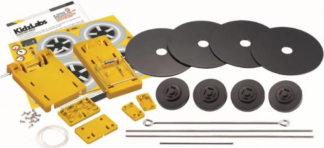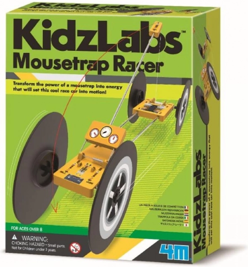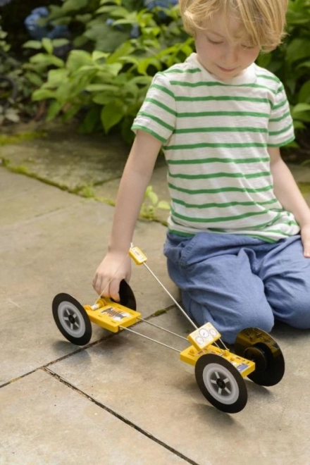 La voiture de course KidzLabs montre aux enfants les bases de la physique grâce à la transformation de l’énergie du ressort en mouvement.