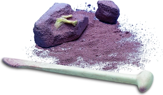 - Un dinosaure brillant dans l’obscurité, enfermé dans un bloc de plâtre