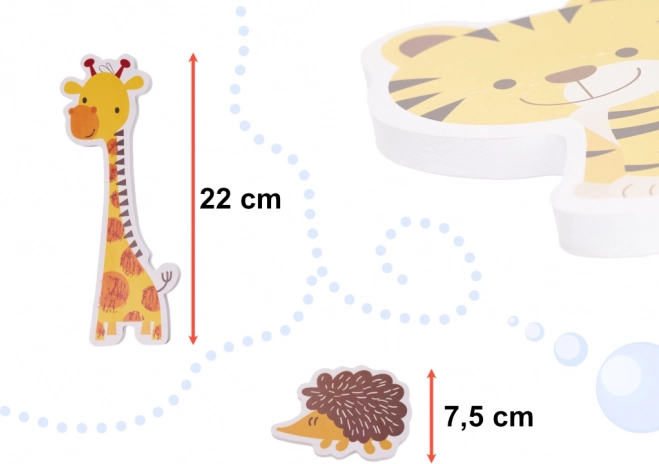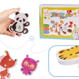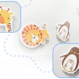 Des motifs joyeux comme la girafe, le tigre, le petit singe ou le hérisson captivent les enfants par leurs couleurs vives et encouragent des assemblages créatifs et des histoires.