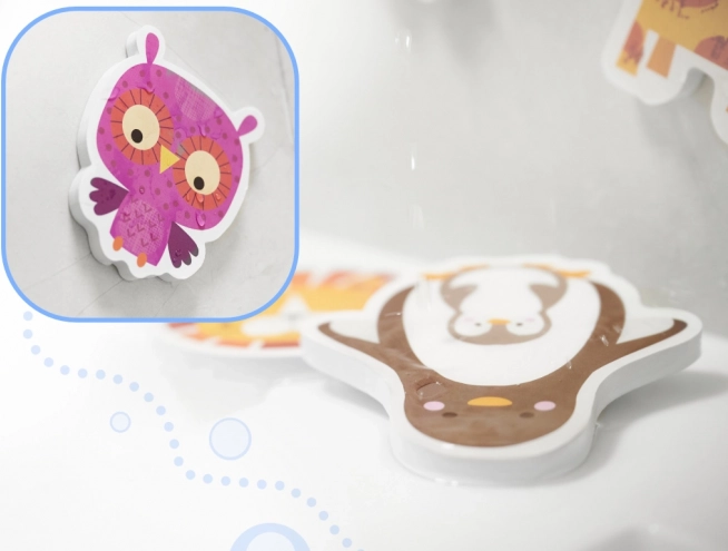 Découvrez la magie des jeux de bain avec ces animaux en mousse colorés que les enfants saisissent facilement et peuvent coller sur les carreaux humides et les parois de la baignoire. Les pièces sont douces, durables et sûres pour les petites mains – pas besoin de colle, l’eau suffit.