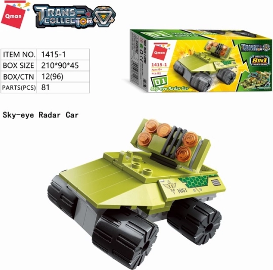 Qman Thunder Expedition représente un kit unique qui vous emmène dans le monde de la technologie militaire. Cet ensemble permet de transformer votre imagination en réalité grâce aux 629 pièces que vous pouvez assembler en 8 modèles différents. Le kit est fabriqué en plastique ABS de qualité et sûr, garantissant une durabilité et sécurité à long terme.