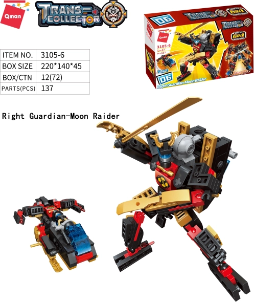 Laissez-vous emporter par l'imagination et la créativité avec l'ensemble Qman Gardiens du noyau stellaire 6 en 1. Cet ensemble contient au total 908 pièces en plastique de haute qualité, qui vous permettent de créer des modèles impressionnants. Chaque ensemble offre deux variantes de construction, garantissant encore plus d'options de jeu et de construction. En combinant les pièces, vous pouvez créer un grand modèle robotique avec différents niveaux de complexité. La compatibilité avec d'autres marques assure l'expansion du monde de jeu.