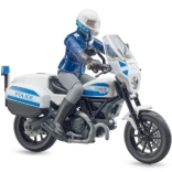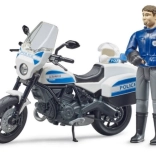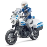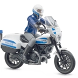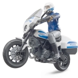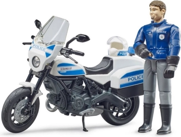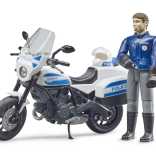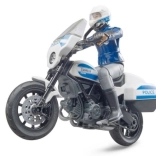 La moto de police DUCATI Scrambler de Bruder est un modèle abouti pour les petits et grands fans des services de secours. La moto dispose d’un guidon orientable pour des manœuvres aisées et d’une béquille repliable pour un stationnement stable. La figurine de policier a des membres articulés, elle peut donc être placée en position de conduite ou à côté de la machine.