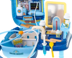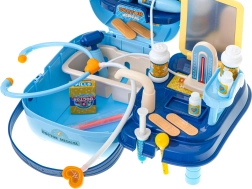 Kit de docteur pour enfants dans une valise pratique qui transforme chaque jeu en cabinet médical. Jouet créatif, qui aide les enfants à apprendre les outils et procédures médicaux de base. Grâce à la valise portable, les enfants peuvent jouer au docteur chez eux ou avec des amis.