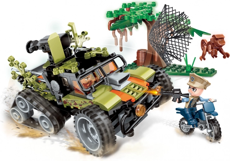 La boîte de construction d’action QMAN de la série Police Battle Force propose une chasse au braconnier dans la jungle avec un lance-filet fonctionnel, des véhicules tout-terrain et 2 figurines. L’ensemble contient 227 pièces en plastique ABS résistant, compatibles avec LEGO et d’autres marques.