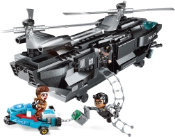 Partez pour une mission palpitante avec le set de construction policier Qman, mettant en scène un hélicoptère robuste et une poursuite sur l’eau. L’ensemble comprend 473 pièces et 3 figurines, offre des rotors tournants, la possibilité de retransformer la moto en scooter des mers et est compatible avec d’autres ensembles. Fabriqué en plastique ABS durable et sûr pour un plaisir de jeu longue durée.