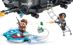 Entrez dans l’univers des missions d’action avec une unité de police qui ne laisse aucune chance aux criminels. L’hélicoptère avec rotors fonctionnels et une échelle de corde descendante permet un débarquement éclair au cœur de l’action, tandis que le fugitif s’échappe sur une machine transformable – de la moto au scooter des mers en un instant.