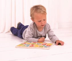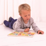 Cet alphabet en bois avec images est un jouet éducatif idéal pour les enfants d’âge préscolaire. Les enfants apprennent à reconnaître les formes des lettres et leur ordre correct tout en exerçant leur motricité fine en insérant les pièces dans le plateau. À l’intérieur de chaque lettre, ils trouveront une image thématique d’un animal commençant par cette lettre, ce qui soutient le vocabulaire et l’apprentissage naturel.