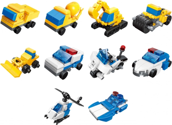 Ce kit comprend 10 modèles différents, y compris une camionnette, une pelleteuse, un hélicoptère de patrouille et bien d'autres, garantissant des possibilités infinies pour que vos enfants développent leur imagination.