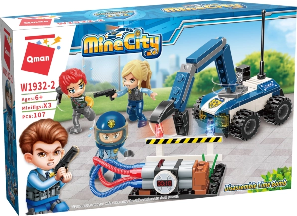 Avec la boîte de construction Qman MineCity, vivez une aventure pleine de tension et de plaisir. Combinez les pièces et créez un véhicule de police qui vous aidera à désamorcer une dangereuse bombe. Le set soutient la motricité fine et le développement de la pensée logique des enfants.