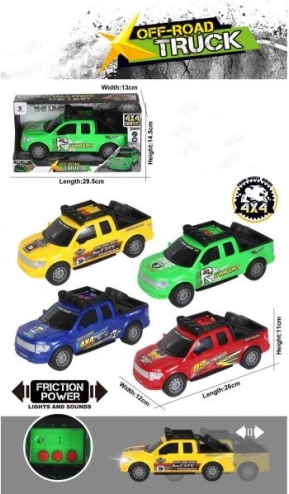 Voiture en plastique de 25 cm ; lorsqu’on appuie dessus, elle émet un son et ses phares s’allument.