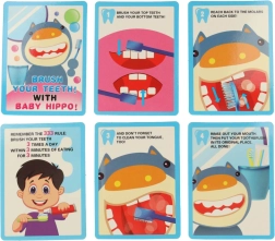 Des cartes colorées présentant les étapes du brossage motivent les enfants à prendre soin de leur sourire régulièrement et correctement.