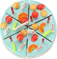 Jouer avec le gâteau aide à apprendre les couleurs et les formes, développe la communication et la coopération lors du « service » partagé. Grâce à ses dimensions compactes, le set est idéal aussi en voyage. Excellente idée de cadeau pour les petits pâtissiers.