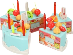 Égaiez une fête d’enfants avec ce gâteau d’anniversaire bleu à découper – coffret de 75 pièces rempli de fruits, de bougies et d’accessoires pour jouer au pâtissier. Grâce aux attaches en velcro, les enfants coupent et reconstituent facilement le gâteau, le décorent selon leur imagination et exercent leur motricité fine ainsi que leurs compétences sociales. Fabriqué en plastique ABS sûr, convient à partir de 3 ans.