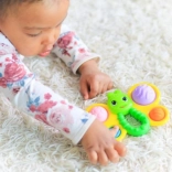 Quatre rembourrages souples différents et des couleurs contrastées stimulent la vue, le toucher et l’ouïe, tout en maintenant l’attention de l’enfant.