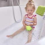 La tortue flotte à la surface et asperge délicatement de l’eau – idéale pour rendre le bain ludique et pour les premières activités aquatiques.