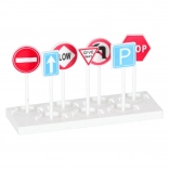 Avion de transport, 3 véhicules de chantier (pelleteuse, camion-toupie, bulldozer), 7 panneaux de signalisation