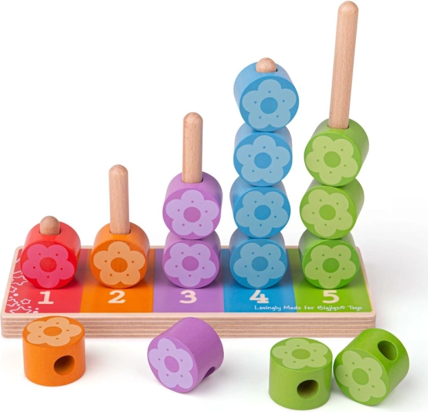 Chaque tige possède son nombre et sa couleur, permettant aux enfants de comprendre facilement le principe d’appariement et de quantité. Les pièces en forme de fleurs se tiennent aisément même par de petites mains et encouragent le jeu autonome ainsi que la découverte partagée avec les parents.