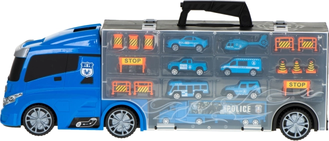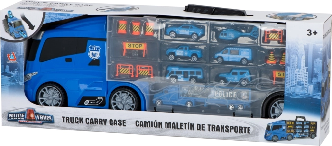 Ce transporteur de police robuste allie amusement, ordre et mobilité. Les compartiments transparents et les portes latérales ouvrantes maintiennent toute la collection bien en place, tandis que le lanceur intégré à l’avant propulse la voiture directement dans l’action. Grâce à sa poignée pratique, le camion se transforme en mallette que les enfants emportent facilement au parc ou chez les grands-parents.