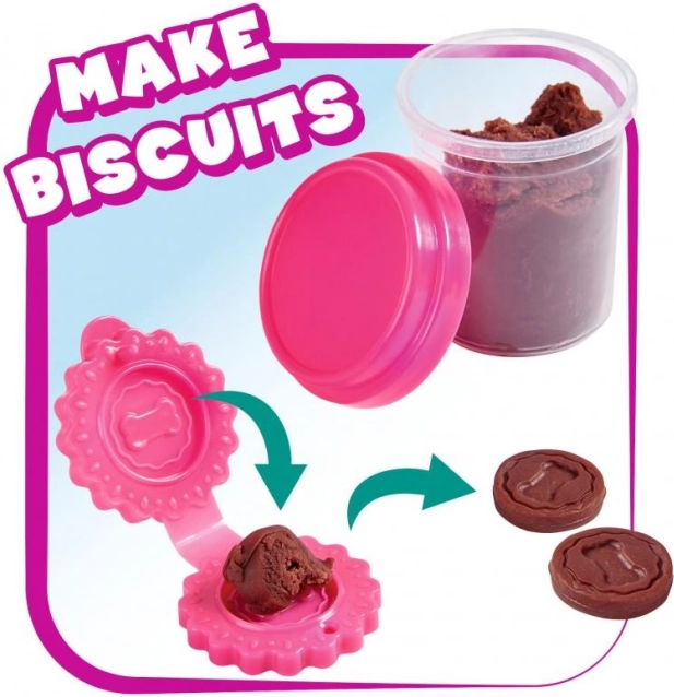 Le set comprend une laisse, de la pâte à modeler, un moule et une boîte en forme de cœur avec des sachets – tout ce dont un petit éleveur a besoin.