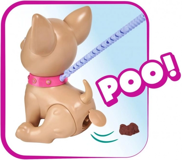 Le chihuahua interactif Poo Poo de CHI CHI LOVE offre aux enfants un jeu à la fois réaliste et sûr autour de l’élevage d’un animal. Prépare une friandise en pâte à modeler, nourris le chien et pars en promenade – après une légère pression sur la laisse, le chien plie les pattes arrière et fait une crotte, que l’on peut facilement ramasser grâce aux sachets fournis.