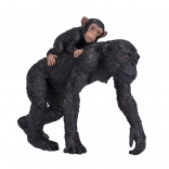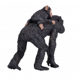 Pelage texturé, proportions exactes et peinture fine des visages apportent un aspect authentique au chimpanzé avec son petit.