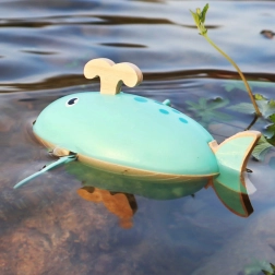 Avec le mécanisme à remontoir, la baleine peut se déplacer seule sur l’eau, apportant amusement et découverte du fonctionnement d’un jouet mécanique.